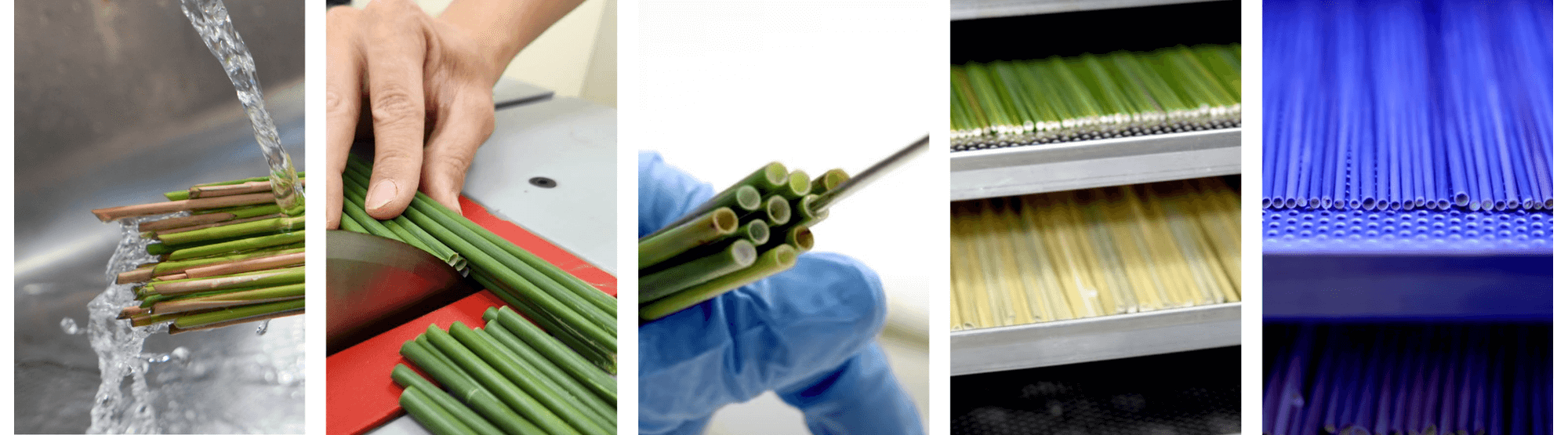 玩艸植造秉持取之自然、回歸自然的理念,從土地種出不必過多加工、無添加任何塑膠黏著劑的蒲草吸管。蒲草吸管比不鏽鋼、玻璃吸管更輕盈,且利用蒲草空心、質地硬實的特性,創造出比紙吸管更耐用的一次性吸管,6個月就能自然分解。這款吸管除了減少使用後的廢棄物,更從生產源頭就幫助環境減碳!每公頃蒲草田年吸碳量預估可達400公噸,固碳能力是傳統水稻田的7~10倍。